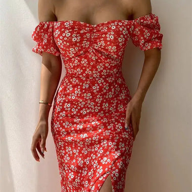 Floral Print Short Sleeve Hip Wrap Party Dress